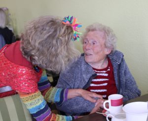 An „Altweiber“ ging es nachmittags hoch her im Café Rosenrot. Martina Katrinski war mit ihrem Akkordeon gekommen und bei ihrem